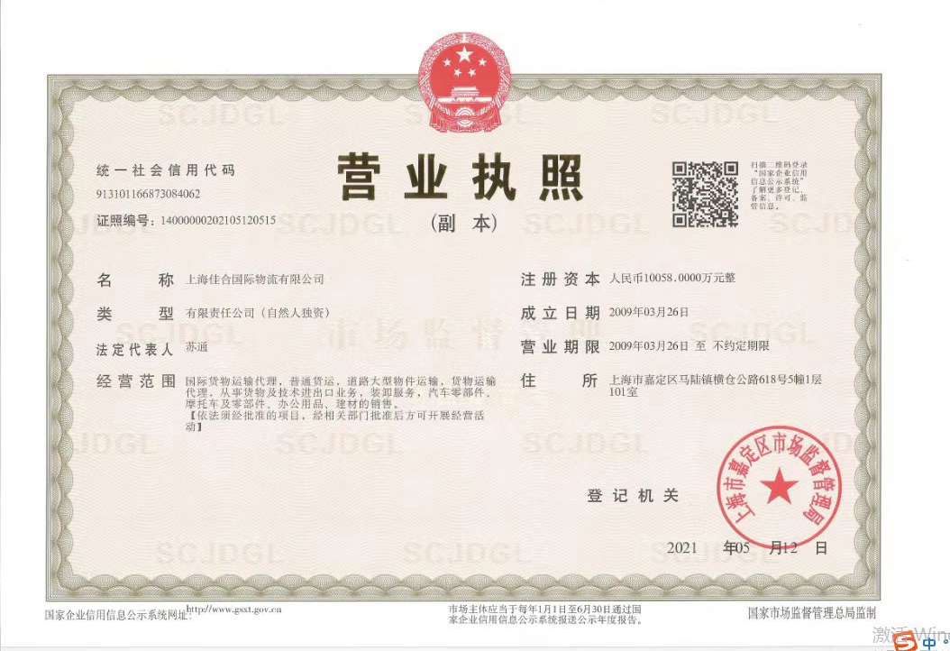 【標(biāo)題】上海佳合國(guó)際物流有限公司注冊(cè)資本10058萬(wàn),大型貨物運(yùn)輸資...查看詳情>>>